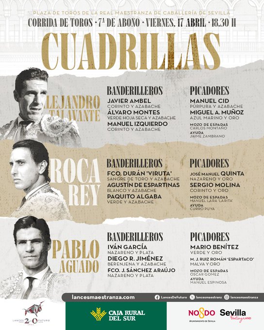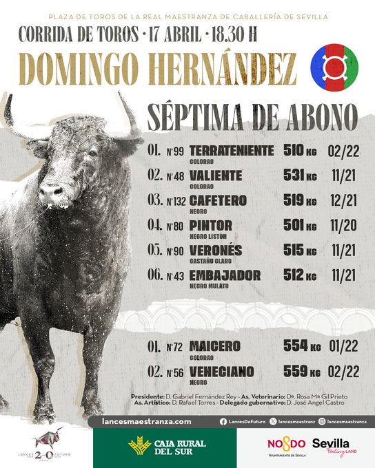 Sorteados y enchiquerados los toros de Domingo Hernández en la plaza de toros de Sevilla para ser lidiados esta tarde a partir de las 18:30 horas por Alejandro Talavante, Roca Rey y Pablo Aguado.