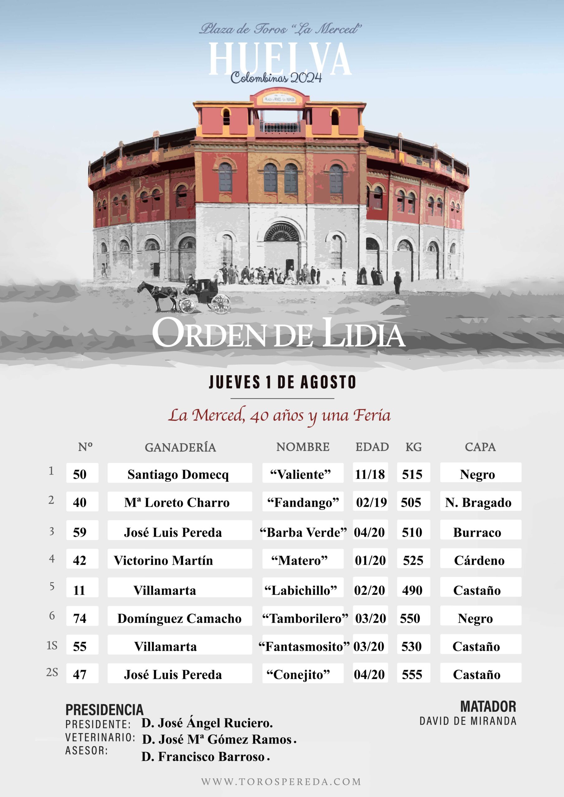 David de Miranda estoqueará astados de Domínguez Camacho, Loreto Charro, Villamarta, Victorino Martín, José Luis Pereda y Santiago Domecq
